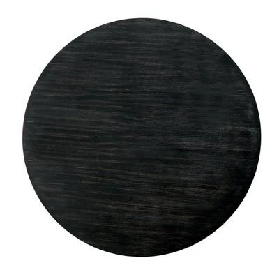 Bold and imposing, this dining table’s presence is an immediate attention-grabber! The spacious round tabletop ensures that everyone can find a place to set their foods or drink when the family is gathered. An ornate, curving pedestal sweeps upward and connects the tabletop to the sturdy base, which features a set of sturdy wood block feet for added stability. Finished in antique black, this piece is able to accommodate up to four people at a time with ease.