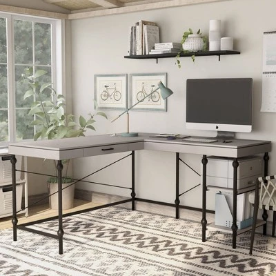 59″ Gulnora L Shaped Desk With USB Power Ports – HOMES: Inside + Out