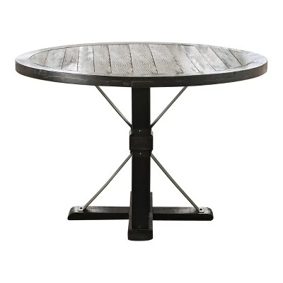 - Table features a center post with trestle inspired diagonal braces that catch the eye