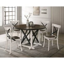 - Includes 1 round dining table and 4 dining chairs