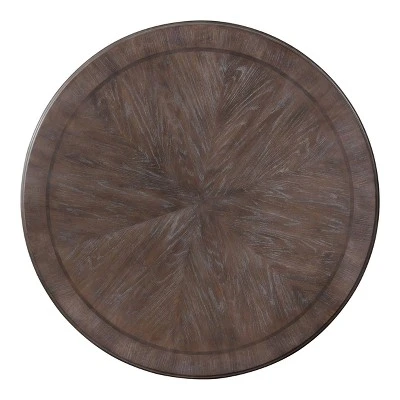 Bring elevated, old-world charm to your dining space with the Darja Round Dining Table from HOMES: Inside +Out. The pedestal base features scrollwork detailing and four sturdy feet that help keep everything in place. Subtle distressed detailing on the tabletop creates a rustic finishing touch. This large round dining table sits up to six people, making it a perfect pick for everyday dinners with the family or hosting monthly game night with friends.