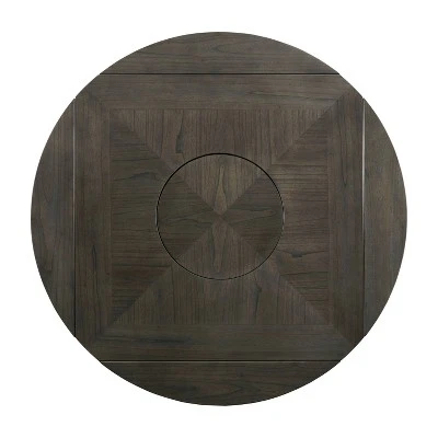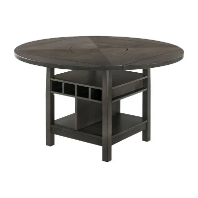 A charming farmhouse aesthetic delivers smashing charm to a casual kitchen or dining room when the Summerland round dining table arrives, offering utility as well as visually captivating looks. Solid wood and wood veneer construction in your choice of finish options embellishes a table unit with a round top and drop-leaves to make it square. A tabletop Lazy Susan offers convenient access, and a base with open shelving, wine slots, and an open center shelf ensure you have everything you need for a full meal or informal happy hour.