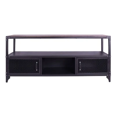 This 3-layer TV Stand is a great choice for you. The top of the table is constructed with strong MDF board and the frame is constructed of heavy-duty power coated steel which is sturdy and can be used for long term. This TV Stand is not only practical and charming but also is suitable for a variety of occasions such as bedrooms living rooms etc. It can help your home stay organized and provide additional storage space. Heavy-duty steel frame ensure stability and sturdiness of rustic top of table 2 sturdy metal grate doors add additional storage space to meet your different needs.