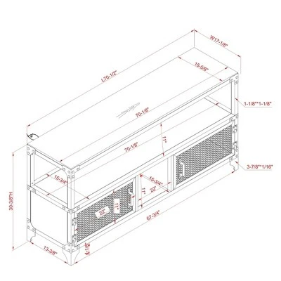 - 30.38 in. H x 70.13 in. W x 17.13 in. D