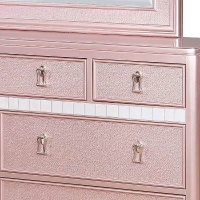 Organize in style with the Homes: Inside + Out Arehart Transitional Mirror Trim Dresser and Mirror Set. Several storage drawers are of ample size to store clothing and accessories in a chic dresser, while a spacious tabletop and elegant mirror add additional style. Appealing features make an artful statement. With a dresser offering decorative pulls, mirror trim, and ornate bun feet, this set will certainly impress. Make organizing look fashionable with the Homes: Inside + Out Arehart Contemporary Mirror Trim Dresser and Mirror Set.