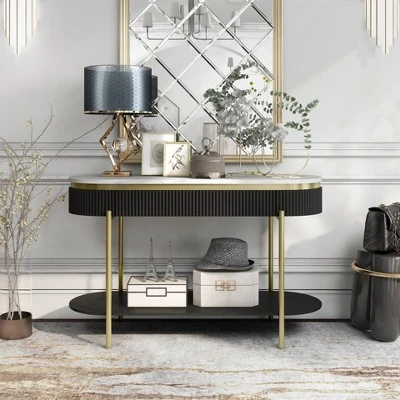 Cartehena Faux Marble Sofa Table With Drawer – HOMES: Inside + Out