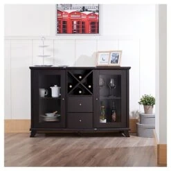 Candie Modern Multi-Storage Dining Buffet With Glass Cabinets Espresso – HOMES: Inside + Out