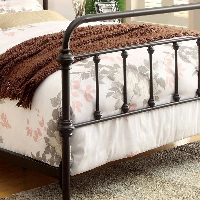 Create a cozy cottage bedroom with this classic metal bed frame. The high headboard and footboard have classic rounded edges. Each slat post is accented with spindles to accentuate this smooth and inviting frame. And to finish it all off the frame is colored in a wear-and-tear resistant powder-coat, available in choice of finish to accent any decor palette.