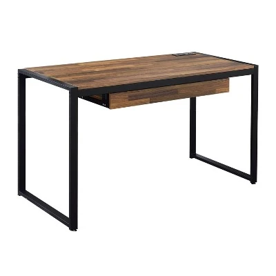 Revamp a workspace to introduce rich style and optimal functionality with this transitional writing desk. Design with a clean, precise aesthetic, it features a 2-tone finish of sand black and natural wood grain to create warmth and contrast. Perfectly sized fora bedroom or living room nook, this writing desk includes a built-in power strip in the desktop that provides access to both electrical and USB outlets. A roomy-Drawer adds a place to tuck pens, notebooks, and other accessories out of sight.