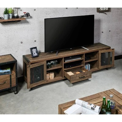 Briggin Industrial TV Stand For TVs Up To 70″ Walnut/Cement – HOMES: Inside + Out