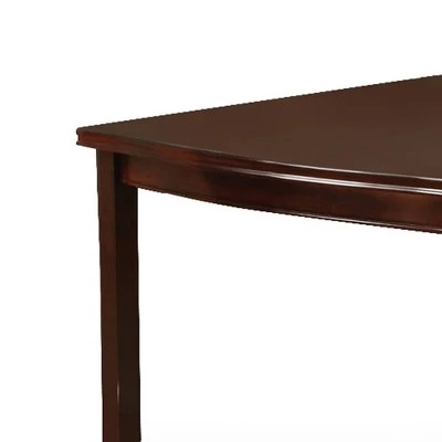 Homes: Inside + Out Glaivewood Dining Table in Espresso brings an inspired, simple elegance to your formal or semi-formal dining space. The rounded edges add a sophisticated look and brings a sense of unique, graceful style to your dining room. Friends and family will appreciate its inviting look and grand elegance Homes: Inside + Out Glaivewood Dining Table in Espresso easily seats 8 friends and family members and also features a useful 18″ expandable leaf!
