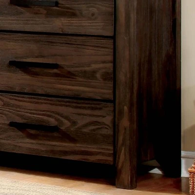A clean minimalist design with natural elements, the Hayes farmhouse style dresser brings the outdoors in with the warm dark gray wire-brushed finish and earthy wood grain details. This six drawer dresser features slim metal handles and clean linear lines. Blending beautifully with any decor style, this piece offers modern appeal for a cozy, dynamic look that will inspire your bedroom design. Matching mirror is available separately.