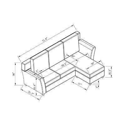 - 72 in. W x 53.5 in. D x 35.5 in. H (Arm Height: 25.6 in. H, Back Height: 36 in. H, Seat Depth: 20-41 in. D)