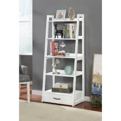 Add a new look to your living room with this bookshelf. It Features a ladder structure in a contemporary style. This piece offers five shelves and one drawer to store and display your books and decor items. The rich finish will bring a unique touch to your home decoration while the solid structure ensures stability.