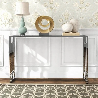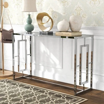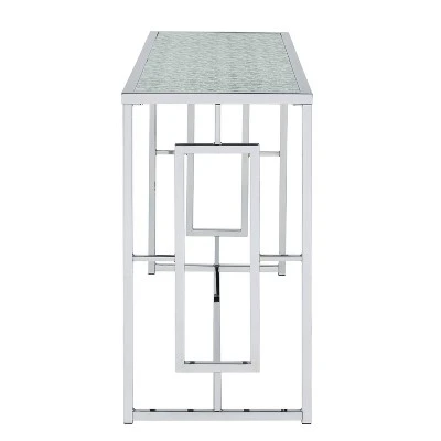 A perfect entryway design for your home’s personality, the console table is perfect for showcasing family photos in the living room or hallway, serving as a catch-all for keys and mail in the foyer, or hoisting glasses of water behind the couch. Wherever you place it, pick one that’s in line with the personality of your home Crafted from a metal frame paired with a silver chrome finish with a sleek ripple pattern glass top, it showcases a glam look perfect for adding modern style to your entryway.