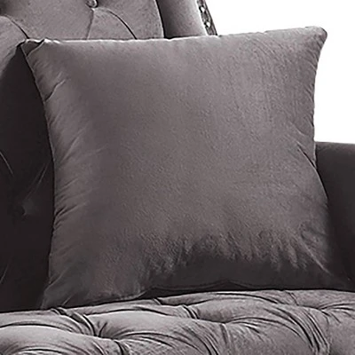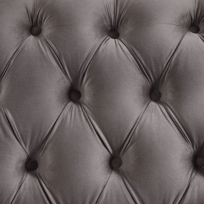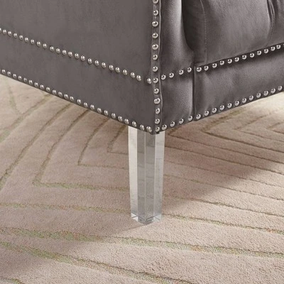 Instantly amplify the glam elegance of your living space with the elevated look and feel of this transitional loveseat. Soft gray flannelette upholstery delivers the inviting texture of velvet while shaped arms and nailhead trim capture attention. Button tufting creates a diamond pattern with a sophisticated look and clean acrylic legs add a modern touch and lighten the overall look.