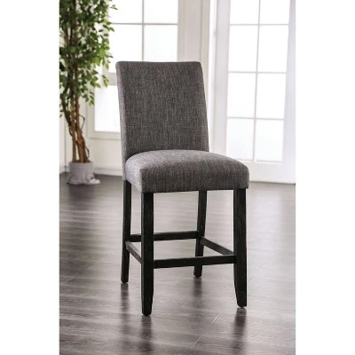 Elegant and graceful, this set of counter height chairs from the Norelo collection is perfectly suited for a transitional style dining space. Slide each chair up to a tall dining table or breakfast counter and spend long meals chatting with friends and family rested upon a cozy cushion wrapped in a neutral gray linen-like fabric. With tall, antique black finished legs and foot supports, these chairs also add a pop of contrast to any room.