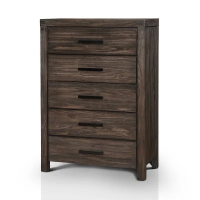 The Homes: Inside + Out Simones Farmhouse 8-Drawer Dresser and Mirror brings a new twist to conventional decor. With tiered dresser units and a tall, narrow mirror, the overall design of this dresser and mirror set creates unique dimensional fascination. Metal bar handles contribute to a slight industrial motif. Organize your belongings with an ample supply of storage drawers and tabletops. Add visual interest to your bedroom with the Homes: Inside + Out Simones Rustic 8-Drawer Dresser and Mirror.