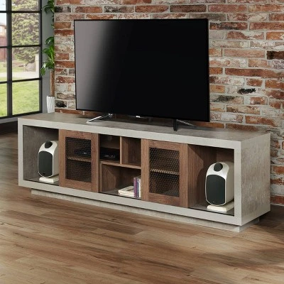 Valla Industrial TV Stand For TVs Up To 70″ Distressed Walnut/Cement – HOMES: Inside + Out